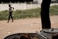 Noel Kaboura from Meagui is a buyer of cocoa beans from plantations. Here he is waiting at a plantation for his colleague Bougma, 24, to take sacks of beans back to Meagui which is approximately 45 k.m. away (a four hour drive).