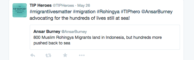 At www.tipheroes.org, we have hundreds of stories that prove the importance of our cause. Browse through the site, listen to the Heroes’ stories, explore their biographies, read about their resources, and share whatever you learn under the hashtag #BeAHero! Also, watch the TIP Report Global Heroes Network’s twitter page for inspiring stories and quotes about our freedom fighters!
